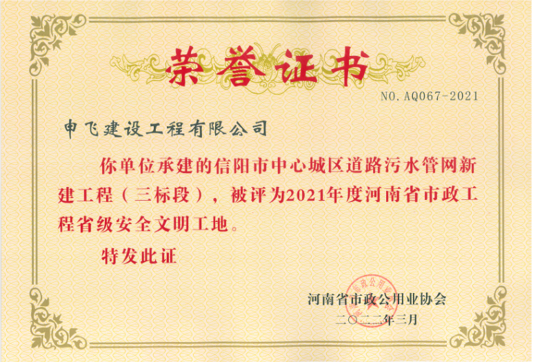 - [04-12]申飛建工再獲“省先進施工企業(yè)”、 “市政金杯獎”等多項榮譽